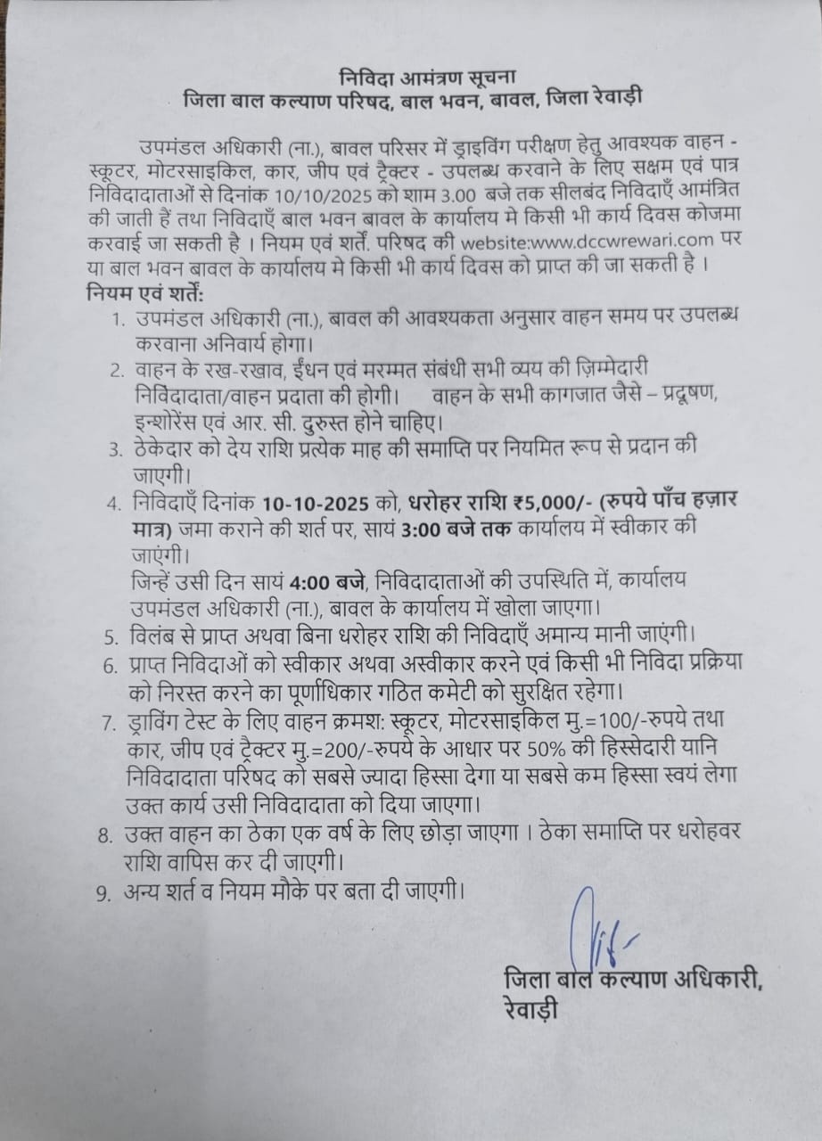 01-Oct-2025 Regarding Provide Vehicle for Driving Training
